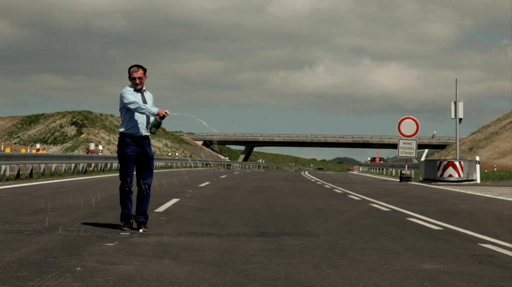 Bystřičan navíc dokazuje, že je skutečným milovníkem sociologie a psychologie. Dokument je okořeněn i několika absurdními momenty. Jeden z nich ukazuje ekologického aktivistu Miroslava Patrika na spanilé jízdě po dotčených vesnicích. Rozhodne se s občany debatovat o dopadu zdržení stavby dálnice a vysvětlit jim pohnutky ekologů. Na očekávanou fyzickou potyčku nakonec nedochází, ale rozhodně k ní nebylo daleko. Na Patrikovou adresu padají velmi ostrá slova a výhružky a je až s podivem, jak silné má občanský aktivista nervy. Stejně tak jeho účast na slavnostním otevření jednoho dobudovaného dálničního úseku působí rozruch, který si Miroslav Patrik evidentně užívá.